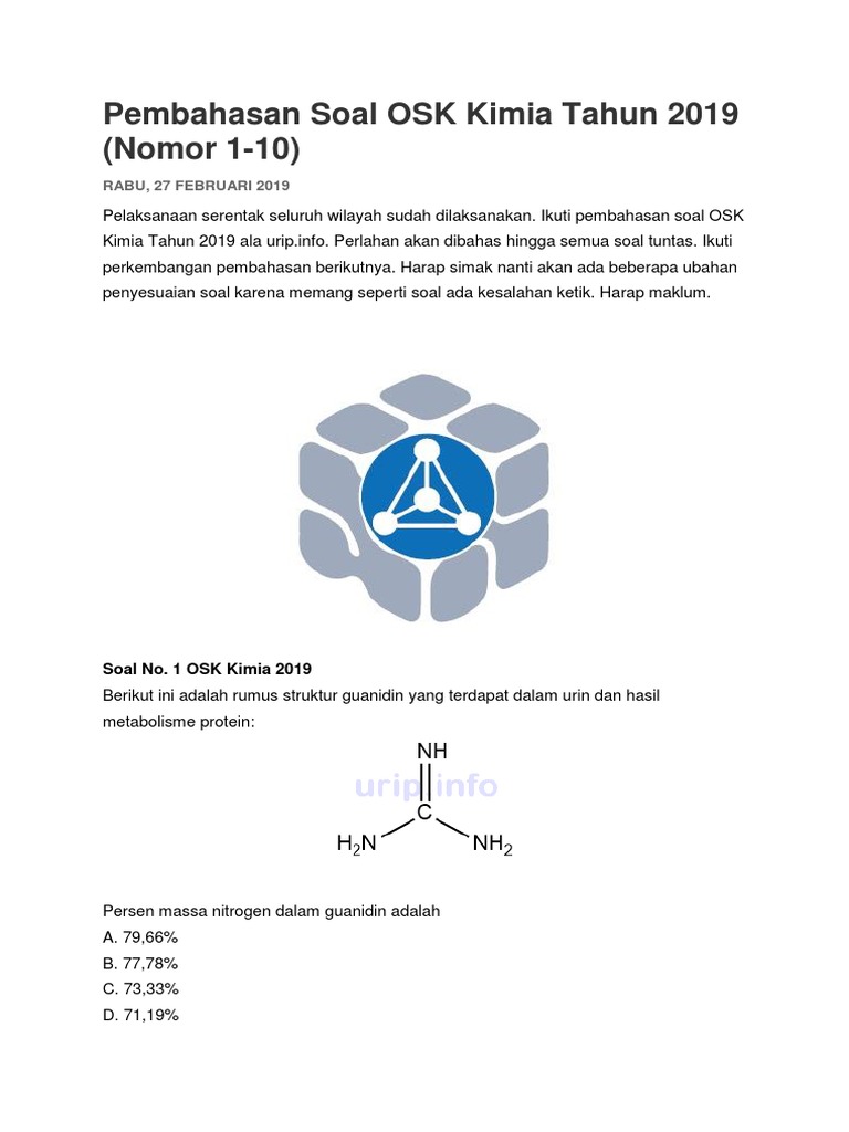 / Pembahasan Osk Kimia 2018 Essay / Download Soal Osp Kimia 2019 Pdf Materi Kimia / Pembahasan soal ini dibuat oleh pengelola blog ini, sehingga jawaban dan pembahasan bisa saja tidak tepat, oleh karena itu dengan senang hati jika ada pembaca yang sudi memberikan saran dan perbaikan atas penyelesaian yang tertulis di sini pada kolom komentar.