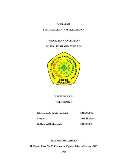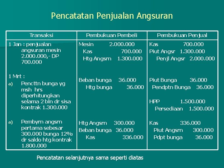 Contoh Soal Penjualan Angsuran Barang Dagang - Makalah Seminar Akuntansi Keuangan Penjualan Angsuran Dosen Kaswandi Z S E Mm : (debit) piutang usaha rp 7.500.000 (kredit) penjualan rp 7.500.000. contoh soal dan ian penjualan angsuran barang bergerak. Akuntansi dagang metode perpetual perusahaan dagang adalah perusahaan yang kegiatan utamanya melakukan transaksi beli dan jual barang dagangan. = (300 x 105.000)+(200 x 65.000) Sekian penjelasan yang bisa admin berikan mengenai contoh soal dan jawaban penjualan angsuran. 500 juta yang nilai bukunya rp.