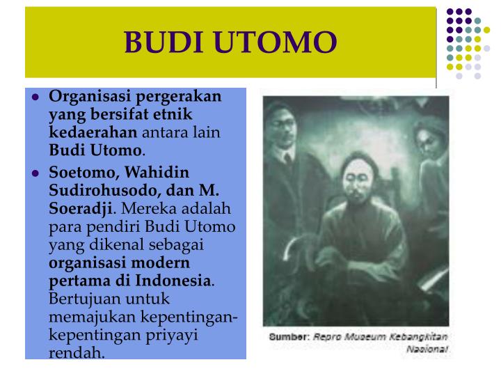 Organisasi kepemudaan ini didirikannya lantaran banyak pemuda yang menganggap bahwa boedi oetomo merupakan organisasi elit. Tri koro dharmo diartikan sebagai "tiga tujuan mulia" yakni didefinisikan sebagai sakti, budi, dan bakti. Pada awal berdirinya, organisasi ini masih dikenal dengan nama tri koro dharmo (tiga tujuan mulia), di bawah pimpinan dr. Tujuan penelitian ini adalah untuk mengetahui: Tujuan didirikannya jong java atau tri koro dharmo adalah untuk menyatukan para pelajar pribumi memajukan pengetahuan umum dan membangkitkan .