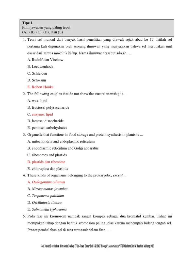 Contoh soal olimpiade biologi smp/mts 2020 dan kunci jawabannya.
